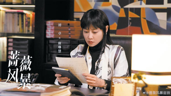 商战冲突是《蔷薇风暴》构建商海群像的重要纽带,剧中人物不断上演着理想与利益的现实冲撞,信念的光辉与矛盾都在剧情中被放大。谭卓饰演的《中商浪潮》主编谢琳慧犀利敢言,屡获传媒大奖,却由于深度追踪行业内幕遭多方构陷,终因刊发一篇错误数据的报道而停职。高叶饰演的江一笛是热血追梦的投行打工人,却成为高层内斗的牺牲品。一个是叱咤职场的女强人,一个是初入职场的新人,面对被利用、背叛和陷害的种种困境,谢琳慧和江一笛从针锋相对到携手合作,从职场失意到重新崛起。