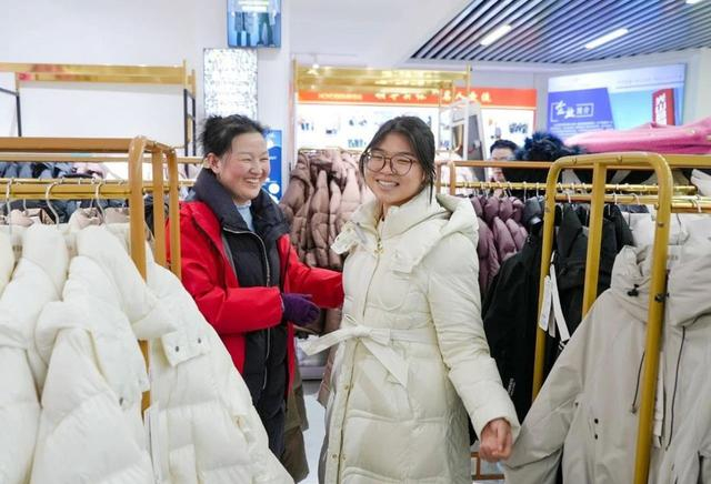 “年关到了,天气冷了,一年一个新,今天带家里的老人和小孩来这里选了几件羽绒服,感觉价格实惠,质量好,然后款式也新颖,挺满意的。”在潢川县工作的卢女士是商丘市人,听说这里的羽绒服不仅款式多,而且材料优质,专门带着老人、孩子前来选购,准备春节带回老家。
