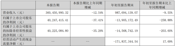 这份三季报“成绩单”延续了去年上半年公司营收下滑、净利亏损的业绩窘境。