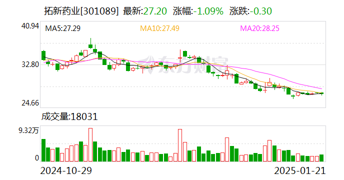 2024年前三季度,拓新药业实现收入3.26亿元,归母净利润-265万元。