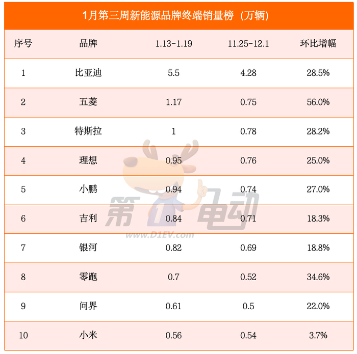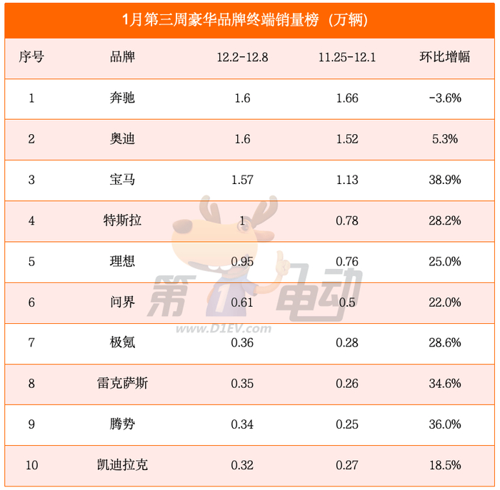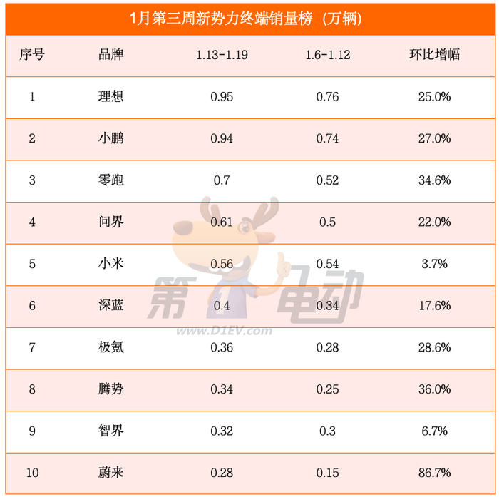 1月第三周销量榜:小鹏紧逼理想,问界再超小米进入前五