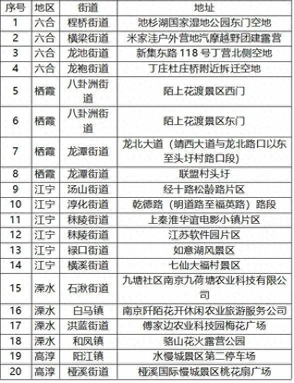 栖霞、江宁、六合、溧水、高淳区部分区域。