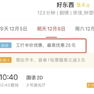 由广东省电影局主办的“影惠万家,‘粤’享精彩”电影惠民消费活动将于1月19日10:00启动,春节档电影早上9:00开售,各大购票平台补贴全面上线。1月19日—2月28日,活动期内,影城所有场次均可使用该优惠券。