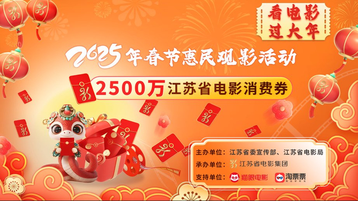 1月17日起,江苏省春节惠民观影活动开始,发放2500万元惠民观影券,为期一个月。其中,通过猫眼平台发放2000万元电影消费券,推出家庭欢乐套票,单人立减20、双人立减40、三人立减60优惠,通过淘票票平台发放500万元单人立减20元消费券。加大补贴力度,在春节期间吸引更多观众走进影院。