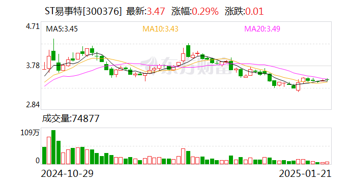 中证智能财讯 ST易事特(300376)1月21日晚间披露2024年度业绩预告,预计2024年归母净利润1.8亿元至2.36亿元,同比下降58%-68%;扣非净利润预计1.31亿元-1.87亿元,同比下降56.87%-69.83%。以1月21日收盘价计算,ST易事特目前市盈率(TTM)约为34.17倍-44.85倍,市净率(LF)约1.16倍,市销率(TTM)约2.38倍。