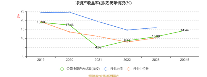 数据显示,2024年公司加权平均净资产收益率为14.44%,较上年同期上升3.45个百分点。