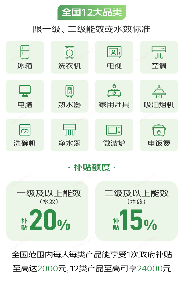 此外,海南省家电换新补贴也已在京东上线。除了冰箱、洗衣机、电视、空调、热水器、家用灶具、吸油烟机、电脑外,购买微波炉、电饭煲、洗碗机、净水器也支持使用“国补”,单件产品最高可享受销售价格20%的补贴,每件产品补贴金额可达2000元。其中,每位消费者购买空调产品最多可享受3次补贴。