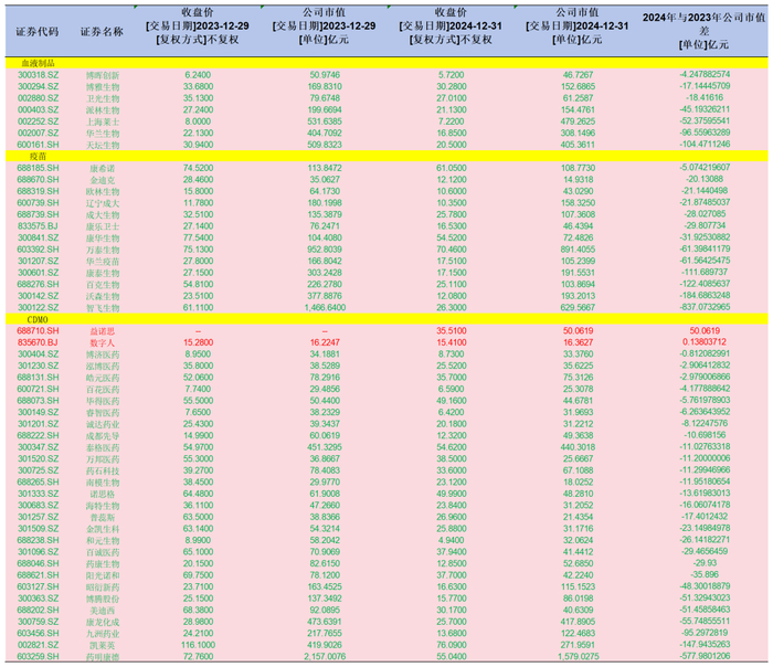 复盘过去一年,A股市场可谓跌宕起伏。部分板块上市公司业绩、股价、市值一路高歌;部分板块上市公司则受到了综合因素影响,考虑到国际市场的竞争态势变幻莫测,让投资者的投资情绪趋于冷淡,业绩、股价、市值考验明显,尤其是CDMO、血液制品、疫苗以及生物制品等板块,整体情况有待投资情绪扭转。