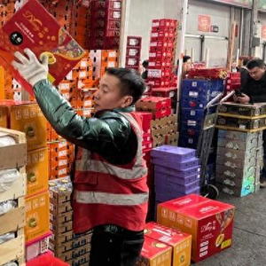 另一边的果品交易区里人头攒动,这里的进口水果区域每天吞吐量达2000吨,占全市比重的30%。上海斌盛贸易有限公司摊位前,朱海莲正忙着为客户打包装车,她告诉记者,春节前一周正是水果销售最旺的季节,其中又属车厘子卖得最好,光她的摊位就有几十种不同品牌、产地、规格的车厘子:“这几天,每天车厘子可卖出20托,一托大约400箱,每箱5斤,除了来自上海的买家外,还有一半的量销往外地,包括苏州、昆山、常熟等长三角城市都来这里拿货。”