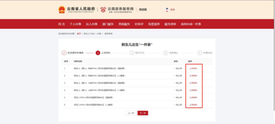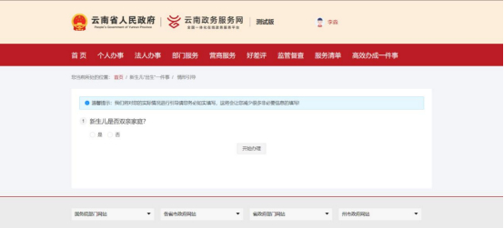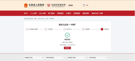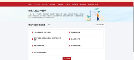 再次进入新生儿出生“一件事”在线办理中的联办