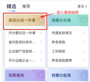 (1)点击“高效办成一件事”选择办理事项。