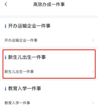 (2)点击新生儿出生“一件事”进入办理流程。