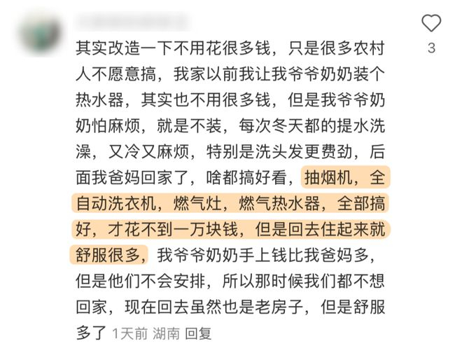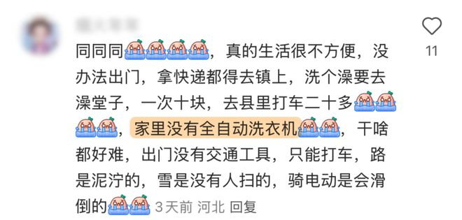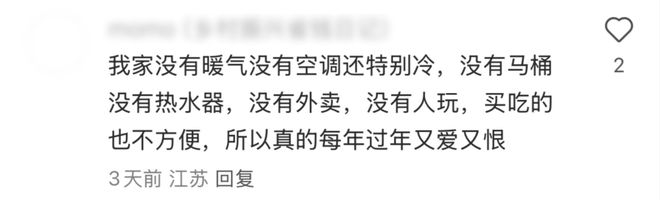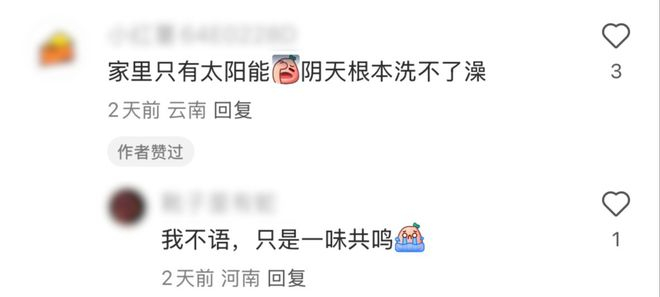 有网友说家里只有太阳能热水器,阴天根本洗不了澡。类似的有人因为家里没有暖气没有空调,每年过年真的又爱又恨。