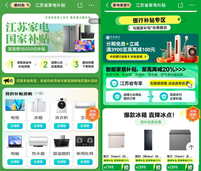 拿江苏国补举例。今年江苏国补在 1 月 1 号就上线京东了。