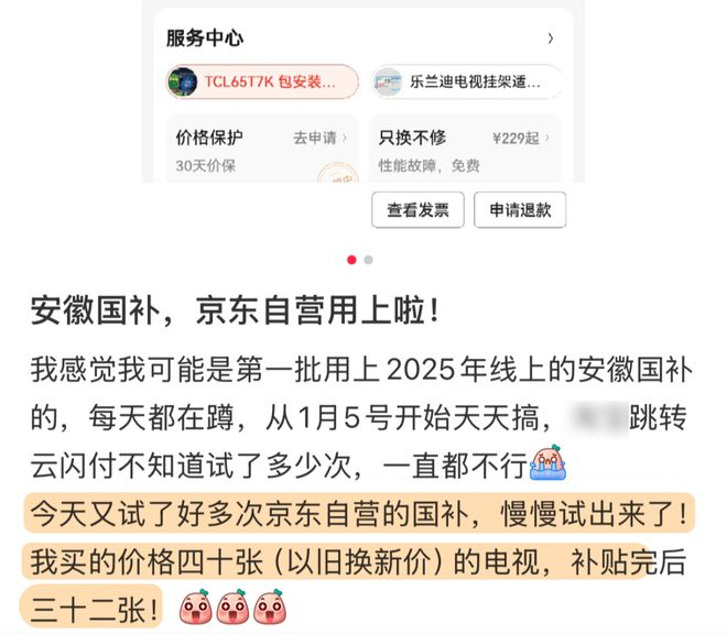 还有安徽网友,从 5 号开始就在蹲国补了,最后成功用 32 张拿下了 40 张的电视。