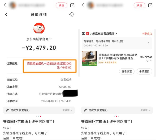比如一位安徽网友 刚用 2400 元买到小米油烟机 P1 ,就跑来小红书分享了。