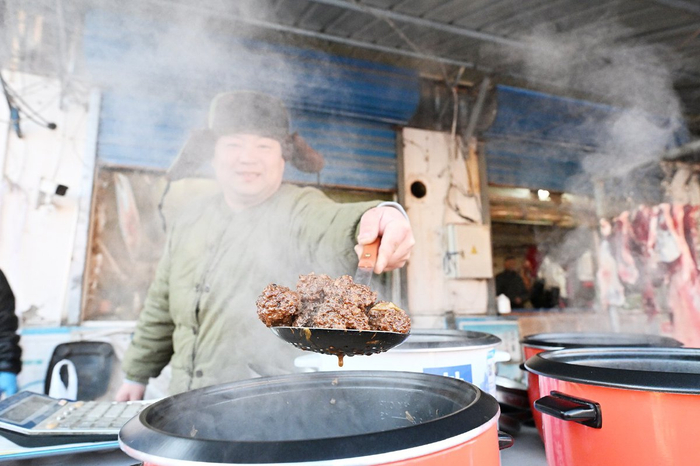 正在摊前试吃的何丽群尝过一个丸子后,果断下单。“小时候家里过节,我爸妈都会提前炸丸子,串门的亲戚来吃饭,炒几个热菜,丸子简单一加工就是一道硬菜,端上桌大伙儿都爱吃。”正是源于这样的“丸子情结”,长大成家了,她也一直延续着父母当年的做法,逢年过节,都会提前备上一些炸丸子。