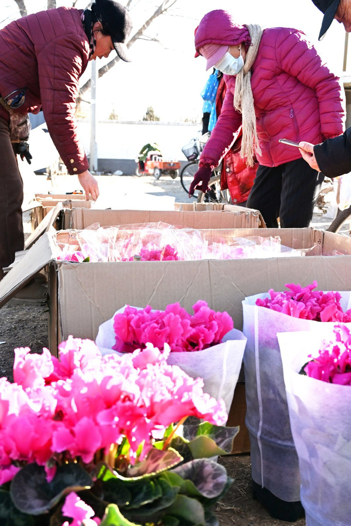 新春给家里购置几盆鲜花,也是很多家庭的习惯。在大集的鲜花摊位前,不少消费者正忙着选购。精心挑选后,市民赵秀兰买了蝴蝶兰、海棠、杜鹃,“过新年了,家里有点鲜花,也是为新的一年增添一缕芳香和喜庆。”