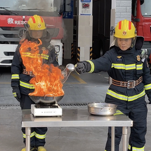 最后一个实验展示了锅盖是否能成功灭火。锅内的食用油出现自燃后,消防员盖上锅盖,火焰瞬间不见了踪影。火真的被扑灭了吗?几秒后,消防员揭开锅盖,有火焰重新冒出,且有增长之势。“这是因为锅内的油还没有冷却到燃点下,此时打开锅盖,有空气补充后,会引起热油复燃。”王伟康提醒,市民使用锅盖灭火时,应将锅盖持续覆盖在起火的油锅上,确保锅内的油完全冷却至安全温度,5~10分钟后再打开锅盖。如果使用尺寸合适的锅盖,可以更好地隔绝空气,阻止火焰继续燃烧。