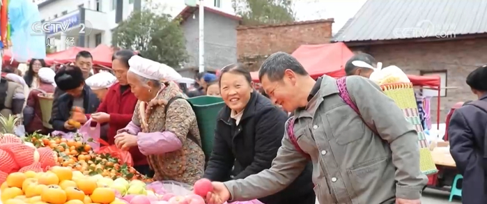 集市上,水果蔬菜、炒货干果、生活用品等商品琳琅满目,人们在这里感受着浓浓年味。