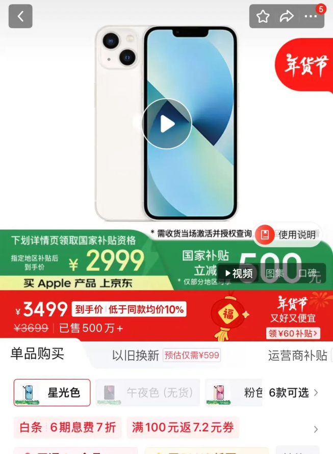 此外,有网友发现国补后iPhone13 128G版本到手仅需2999元,降到历史低价。根据测算,在国补政策的推动下,今年手机国内销量预计达到3亿台。