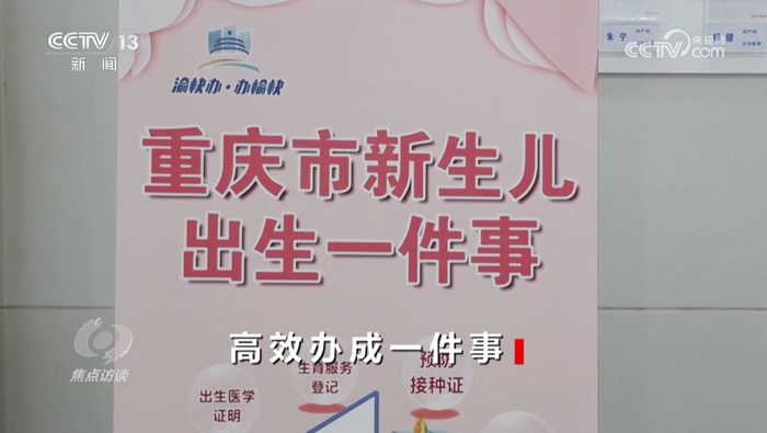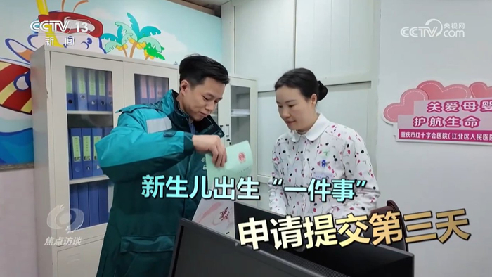 从2024年8月起,所有父母是重庆户籍的新生儿家庭都可以在重庆市政务服务“渝快办”平台上点击新生儿出生“一件事”,办理预防接种、出生证明、户口登记等多项和新生儿相关的事务。原本需要跑六个部门,现在只要一键提交就可以完成。