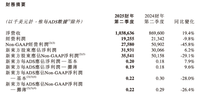 新东方业绩受到东方甄选拖累。报告显示,2025财年第二季度,剔除东方甄选自营产品及直播电商业务产生的经营亏损,新东方经营利润为2500万美元,较上年同期增长102.5%。