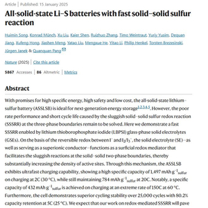 这种全固态锂硫电池实现了快速固固反应速率和高循环稳定性,为发展高比能、高安全、低成本的下一代动力电池提供了一套新的技术方案。