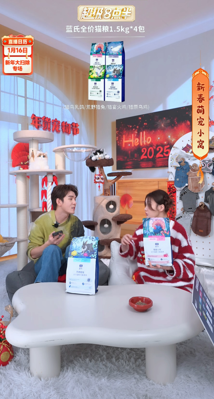 给宠物买“压岁粮”“新年装”也在今年成为养宠一族给“毛孩子”过年的热门方式。今年年货节,宠物类产品在李佳琦直播间共售出超41万件,其中,有近30万件是“家长们”给宠物的“年夜饭”“压岁粮”。