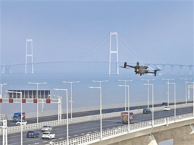 深中通道利用无人机辅助巡查路况。