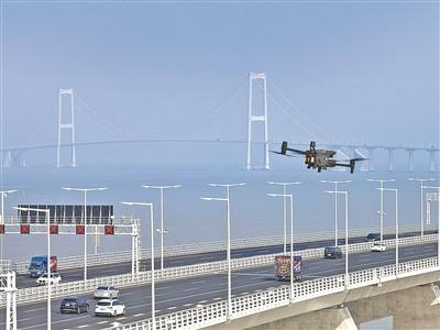 深中通道利用无人机辅助巡查路况。