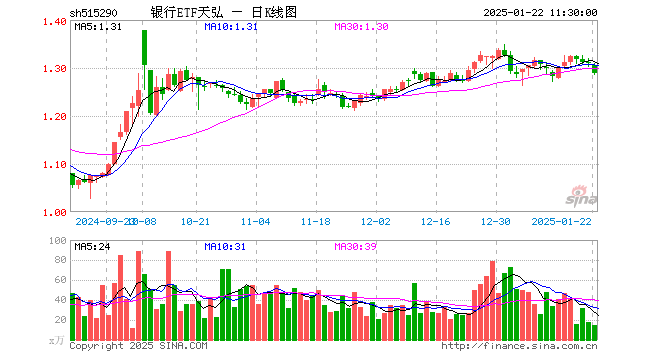 银行ETF天弘(515290)跌1.68%,半日成交额1948.22万元