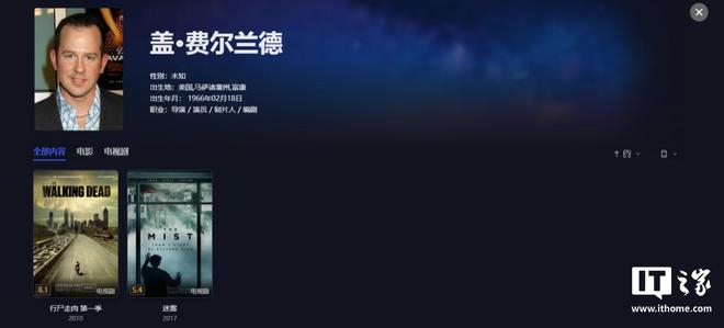 点击演职人员中的演员海报,可以查看演员的详细信息,同时还会展示您当前影视库中,有该演员参与的所有影视资源。