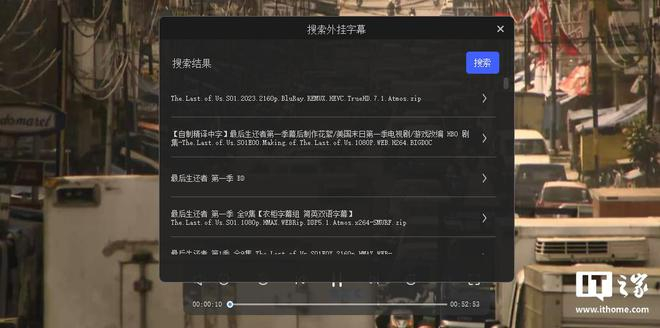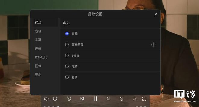 具体播放时,极影视 2.0 自带的播放器功能也是比较强大的,除了可以设定清晰度,还能设置音轨、声道、HDR 显示、图像显示、倍速等等,在原画模式下播放一点都不卡,而且正如前面所说,它还可以设置添加外挂字幕或者在线搜索字幕,对于喜欢观看外国影视作品的同学来说会很实用。