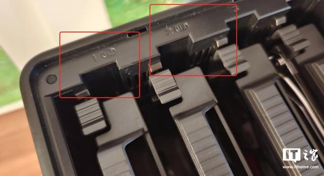 还有就是硬盘架双侧有悬浮式硅胶带,可以带来更低的振动,日常使用时噪音也更小。