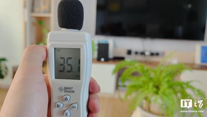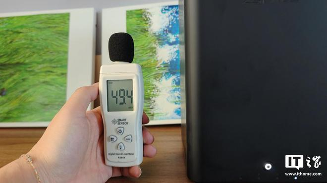 测试时,IT之家一边使用极空间 Q4 传输大型文件,同时一边将极空间 Q4 的风扇模式设置为“强冷模式”,即便是这样,极空间 Q4 近距离的噪音也只有 49.4dBA,而小编将设备放在电视柜上,自己坐在沙发上,距离大概两米,此时能听到的噪音不过 35.1dBA,很轻,完全不会打扰日常的居家生活。