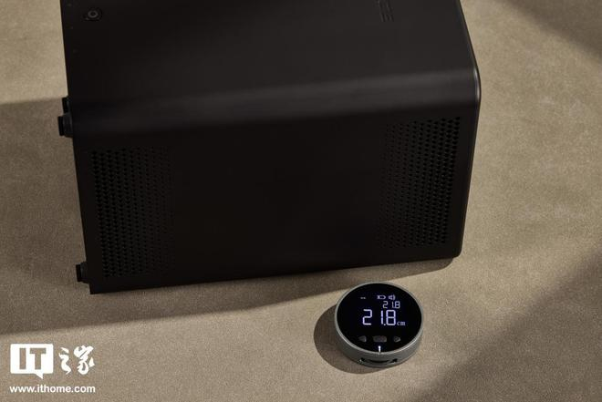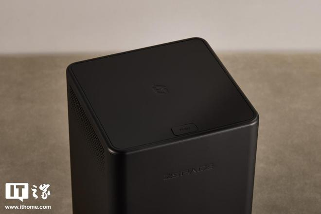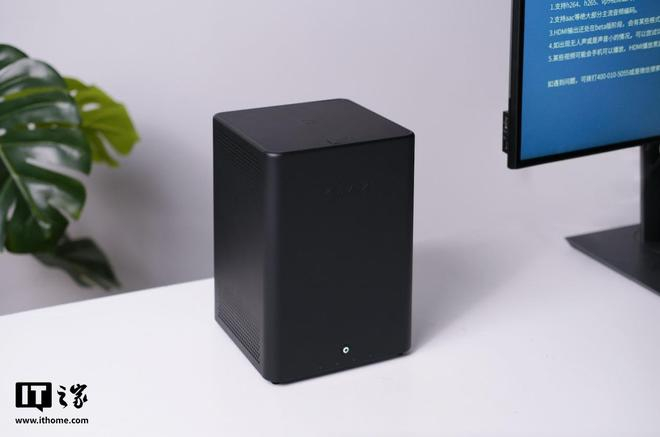 整体来看,极空间 Q4 为圆角长方体的造型,侧身黑色的外壳进行一体化的包裹设计,IT之家拿到的是黑色款,通体全黑,看起来非常简洁优雅,硬朗的直线和温润的曲线元素并存,放在家里属于很百搭的那种。