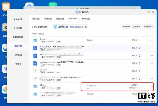 比如小编从百度网盘里下载一部电影到极空间 Q4 中,小编家里的网速是 300M 宽带,可以看到它的下载速度还是很快的,能跑满小编日常使用的最高速度。