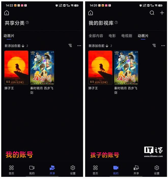 当然它还有一个妙用,就是小编家里有小孩,但是我只想让孩子看动画片,于是就建立了一个“动画片”分类,然后为孩子创建一个账号,将动画片的分类共享给孩子。这样,孩子就只能看到动画片了,这很利于家长对孩子观看内容进行管控。