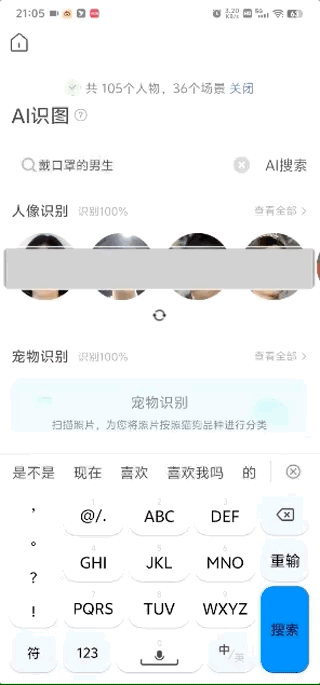 再比如小编接着让 AI 帮我搜“戴着口罩男生的照片”,极空间 Q4 的 AI 依然是既快又准确地帮我找了出来。