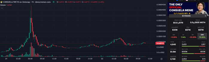 可笑的是,那位所谓的特朗普家“官方保洁员”实际上是美国动画片Family Guy中的一个卡通形象,连名字都是一样的Consuela。这也再一次证明了模因币世界的疯狂,以及特朗普这次发币对整个行业产生的广泛冲击。