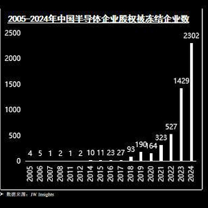 股权融资是推动集成电路产业发展的主要助力,但2024年国内半导体融资的热度正在减退。集微咨询发布的统计数据显示,近年来中国半导体企业股权被冻结企业数量正在迅速攀升,2020年为164件,2024年已经增长到2302件。企业股权冻结可能与企业的财务状况、经营策略、市场环境以及法律诉讼等多个方面有关。当企业股权被冻结时,往往是因为企业或其股东涉及债务纠纷、法律诉讼等问题,导致法院采取强制措施限制股权的转让和处置。