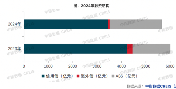 据中指研究院发布的数据显示,2024年房地产行业共实现债券融资5653.1亿元,同比下降18.4%,平均利率为2.95%。信用债成为房企融资的主力,占比超六成;ABS融资规模为2137.6亿元,占总融资规模的比例提升至37.8%,较上一年上升2.1个百分点,均利率为3.01%,同比下降0.59个百分点。