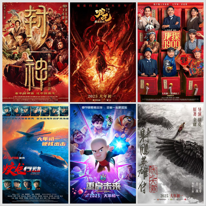 2025年春节上映的六部影片《封神第二部:战火西岐》《哪吒之魔童闹海》《唐探1900》《蛟龙行动》《熊出没·重启未来》《射雕英雄传:侠之大者》,题材多元、类型丰富、主创阵容强大、市场关注度高,自1月19日开放预售以来,创下了春节预售总票房最快破亿纪录。