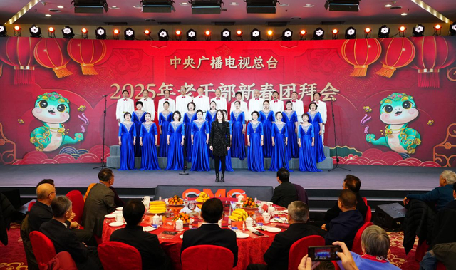 总台党组成员、编务会议成员、总会计师集体向老同志拜年,祝老同志新春快乐、阖家幸福、健康长寿。2025年春晚剧组和总台老年合唱团现场表演了精彩的文艺节目,共贺新春佳节。