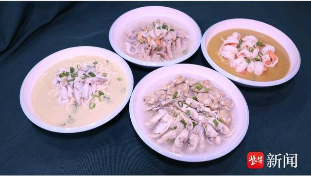 除了赣榆当地地道的海鲜外,尤其“赣榆名小吃”——海鲜面,尤其受到广大观众的欢迎,它采用黄鱼精心熬制的汤底,再加上劲道的面条、近10种地产海鲜搭配,味道非常鲜美。赣榆地处苏北,有着温润的气候,适合小麦的生长,麦香味非常浓郁,特别有韧劲。特产海鲜品种繁多,做面条的时候,加入了一些鱼类、虾类,将它们打成泥,融入到面条当中,更加突出赣榆的地方特色。