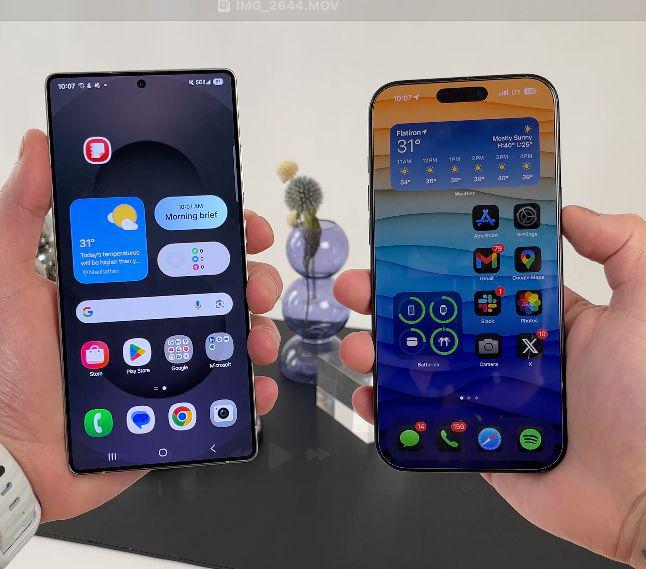 两款手机均采用钛合金材质机身和高品质玻璃,配备三摄像头阵列,质感一流。最大的视觉差异在于 S25 Ultra 的边角更加方正,而 iPhone 则更加圆润,这取决于个人喜好,无法直言孰优孰劣。