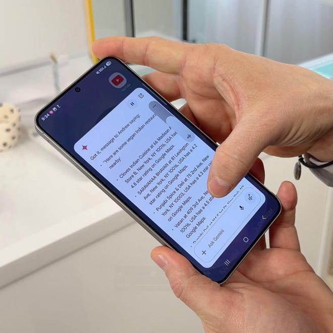Galaxy AI 允许跨应用操作。例如,你可以让它查找下一场足球比赛的时间,并将其添加到日历中,然后发送短信通知朋友;另一个例子是,观看食谱视频时,可以让 Galaxy AI 提取食材信息并添加到笔记应用中。
