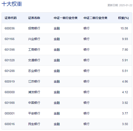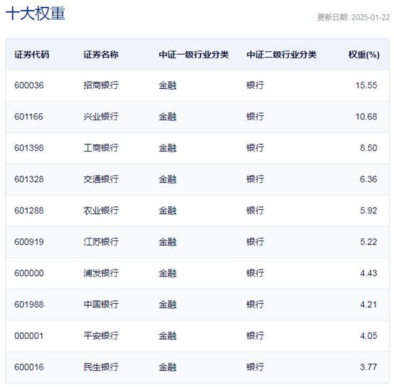 中证银行指数主要权重股