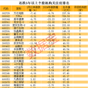整体来看,地产链成为连年下跌股票集中营。其中,中洲控股年线更是9连跌,2016年初至2024年底累计跌幅超77%;然而,年线9连跌且跌幅最大的股票还另有其人,影视公司知名龙头华谊兄弟2016年至2024年连跌9年,累计跌幅超87%;万达电影连跌9年,其间累计跌幅接近85%;东江环保连跌9年,累计跌幅超77%。